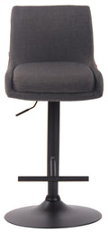 Deze barkruk valt op vanwege zijn elegante design en comfort. De zitting, bekleed met onderhoudsvriendelijke stof, is eenvoudig in hoogte verstelbaar dankzij de gaslift, waardoor hij geschikt is voor elke baliehoogte. De voetsteun, die bijdraagt aan optimaal zitcomfort, is verstelbaar in combinatie met de zithoogte. Het zitvlak kan volledig 360° draaien, wat in combinatie met de voetsteun zorgt voor extra gemak. Het frame van verchroomd metaal herbergt vloerbeschermers onder de trompetvoet, ter voorkoming van krassen op vloeren.
