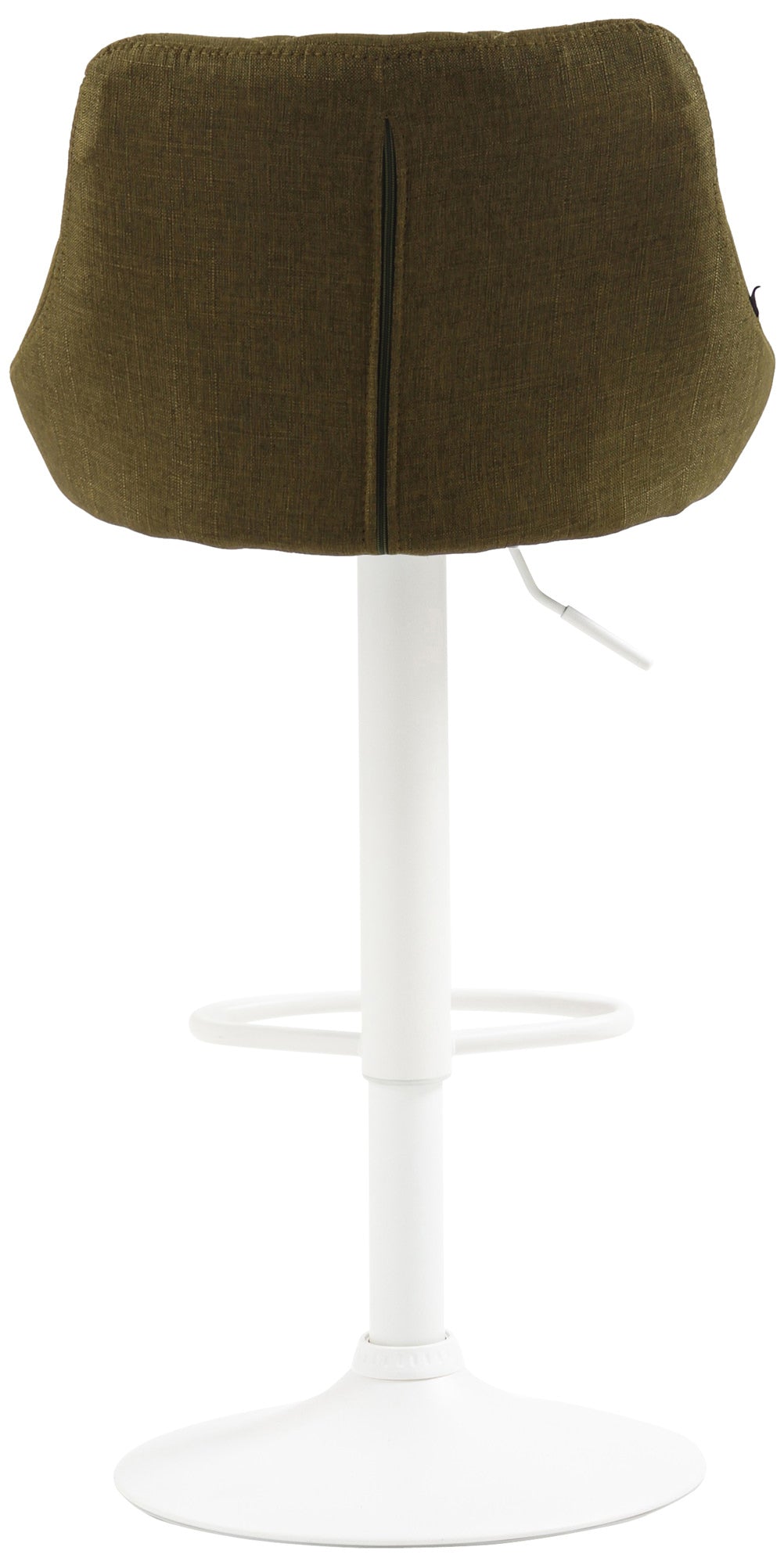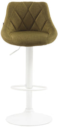 Deze barkruk valt op door zijn stijlvolle ontwerp. De zitting is bekleed met stof en voorzien van uitgebreide decoratieve stiksels. Met de gasveer kan het model traploos in hoogte worden versteld, waardoor het perfect geschikt is voor elke hoogte. De voetsteun, die zorgt voor een zeer goed zitcomfort, kan synchroon worden aangepast aan de hoogte van de stoel. De zitting kan 360 ° worden gedraaid met de voetsteun. Het frame is gemaakt van metaal in een chromen look, en onder de trompetvoet bevinden zich vloerbeschermers die krassen op de vloer voorkomen.