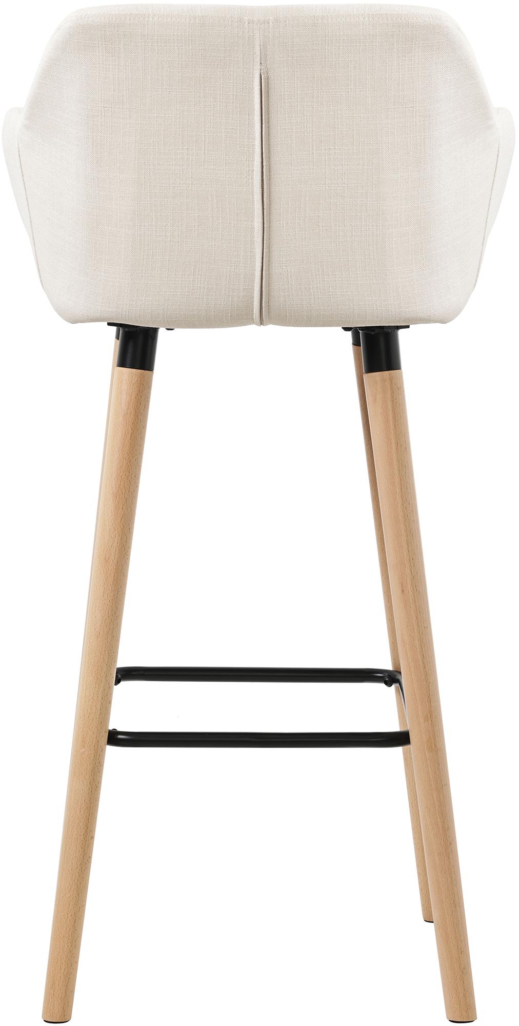 Deze stijlvolle barkruk voegt een bijzondere sfeer toe aan iedere bar. Het ontwerp als loungestoel trekt meteen de aandacht door zijn aantrekkelijke uitstraling. De rugleuning en de vorm zorgen voor een comfortabele zithouding, zelfs gedurende langere tijd. De zitschaal is bekleed met stof en bevat een afneembaar kussen dat dankzij de klittenbandsluiting op zijn plek blijft. De hoes van het kussen is eenvoudig te verwijderen en kan worden gewassen dankzij een ritssluiting. Het stevige vierpotige frame van beukenhout is uitgerust met een discrete metalen voetsteun, die het aantrekkelijke ontwerp van deze barkruk compleet maakt. Perfect voor ontspannen momenten aan de bar.