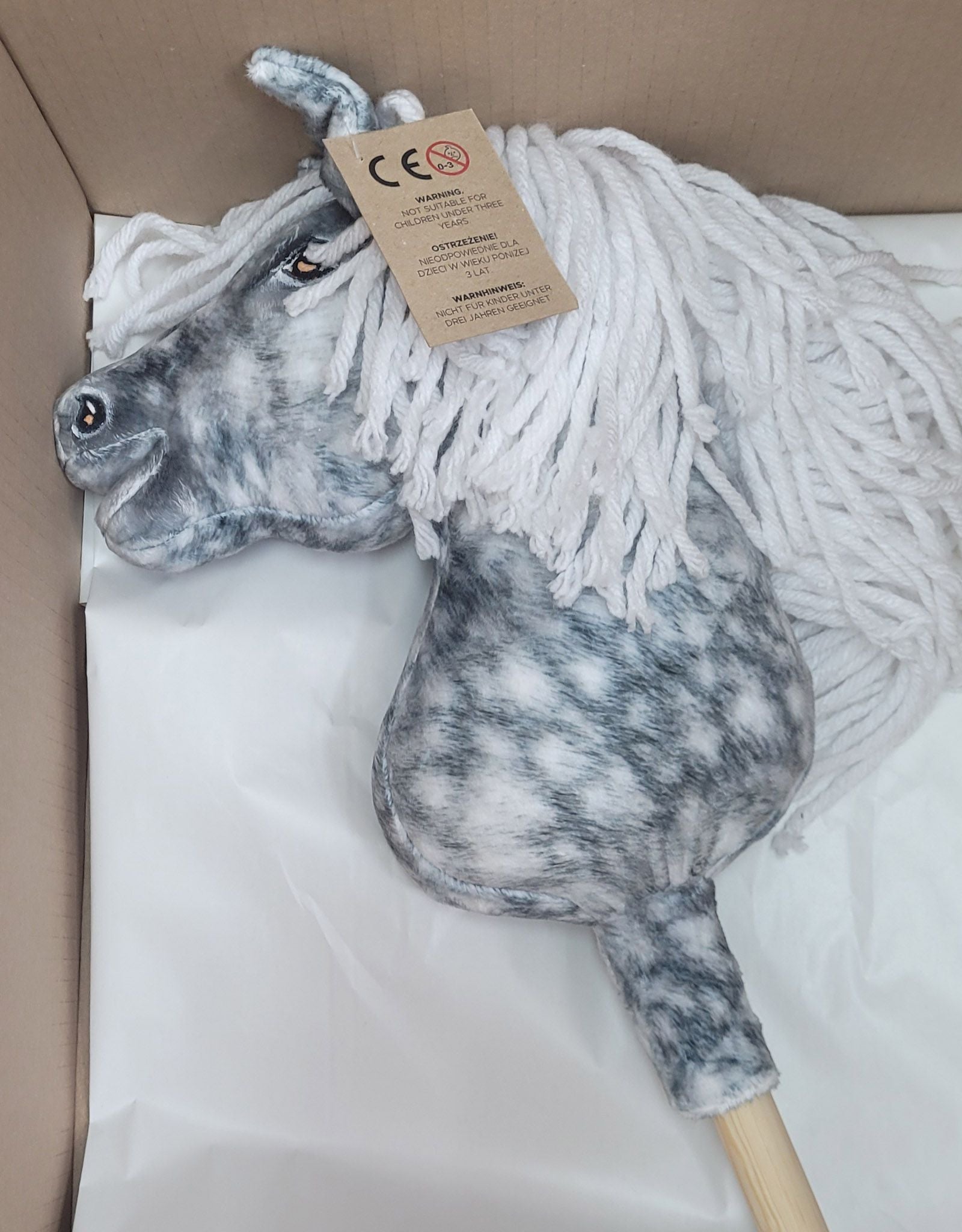 Ontdek de prachtige en realistische Super Hobby Horse A4-formaat - een handgemaakt schimmelpaard met witte manen op een stevige stok. Dit hoogwaardige stokpaardje brengt uren speelplezier en beweging voor kinderen, zowel binnen als buiten.