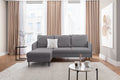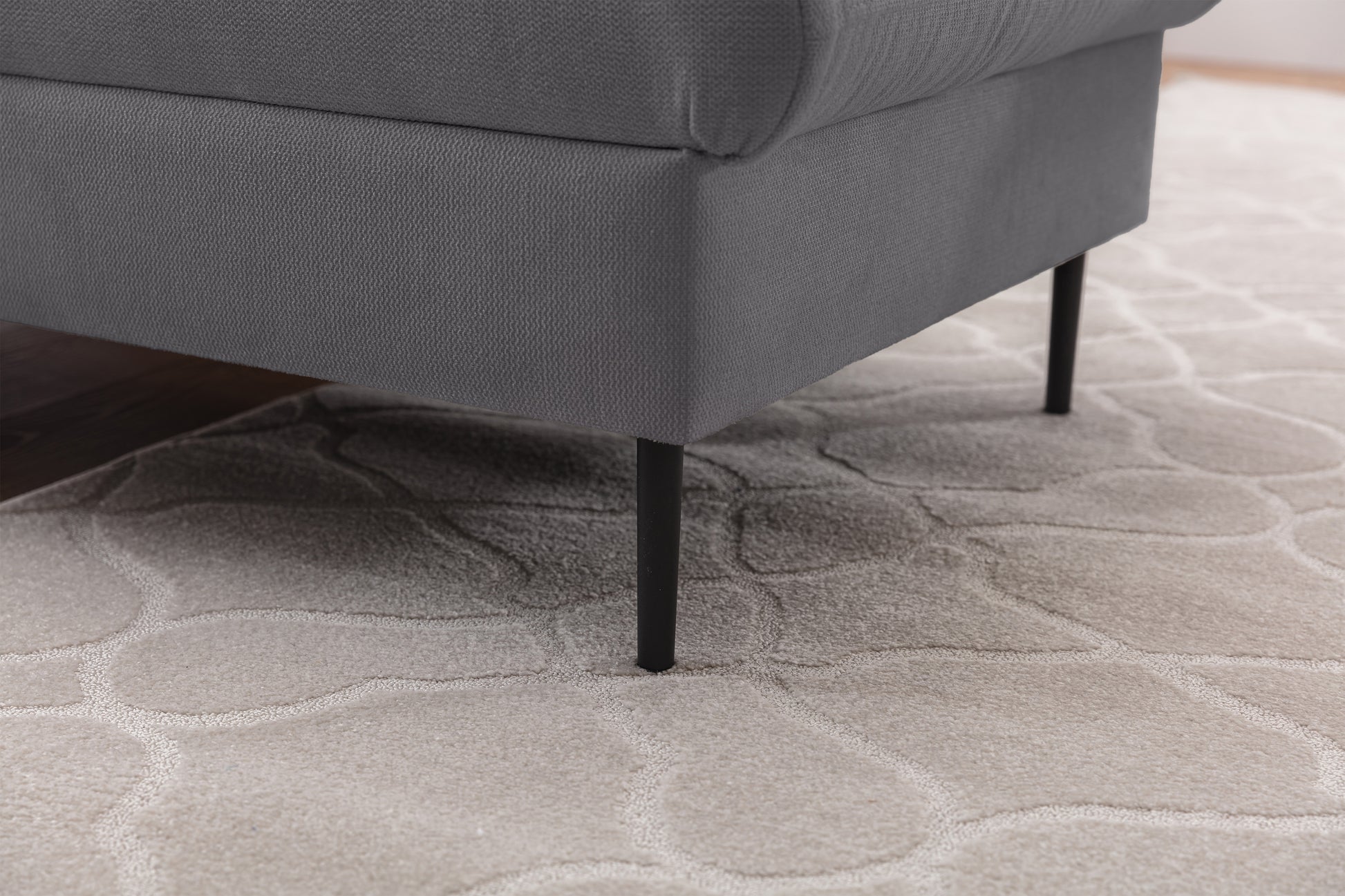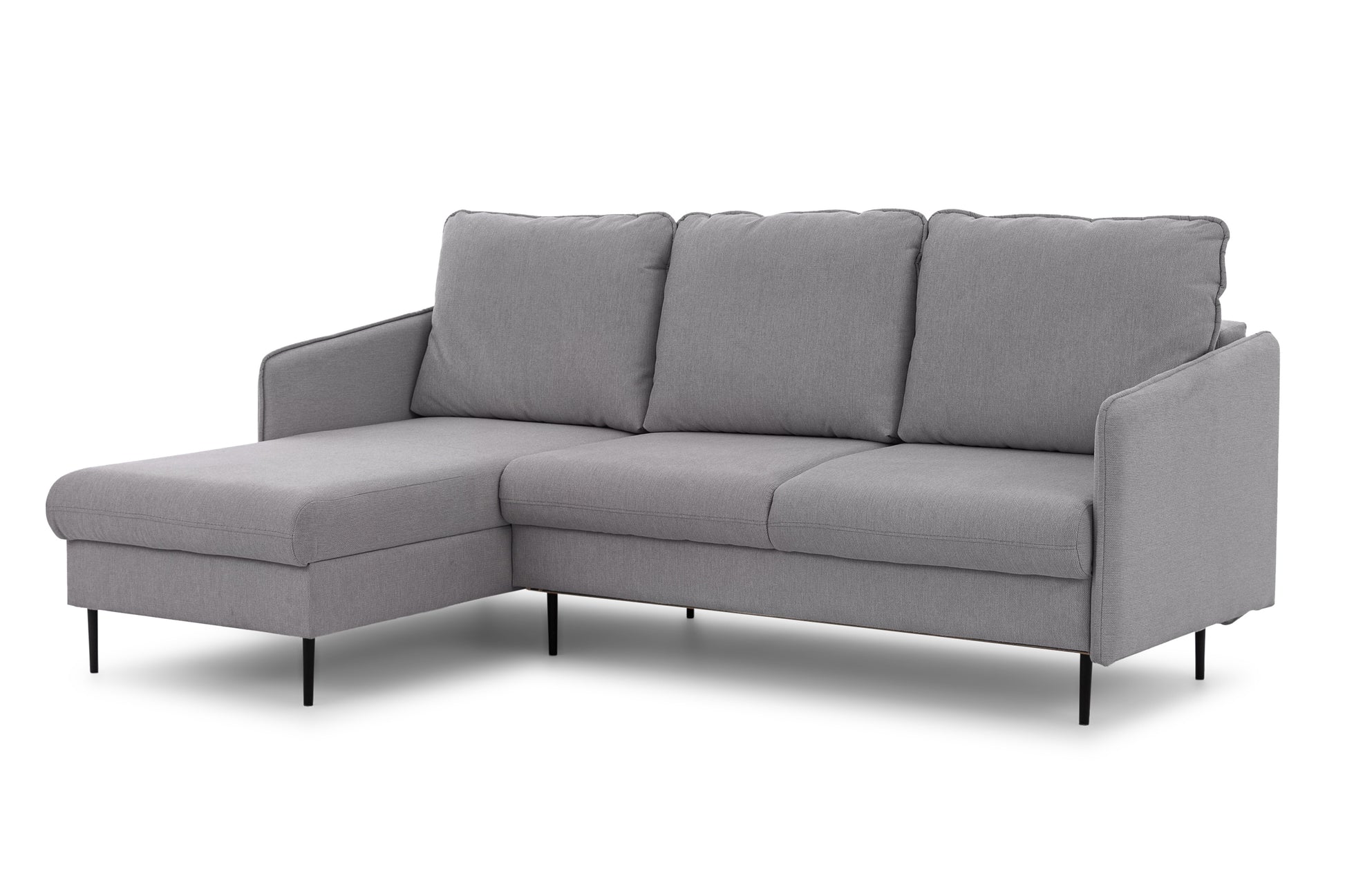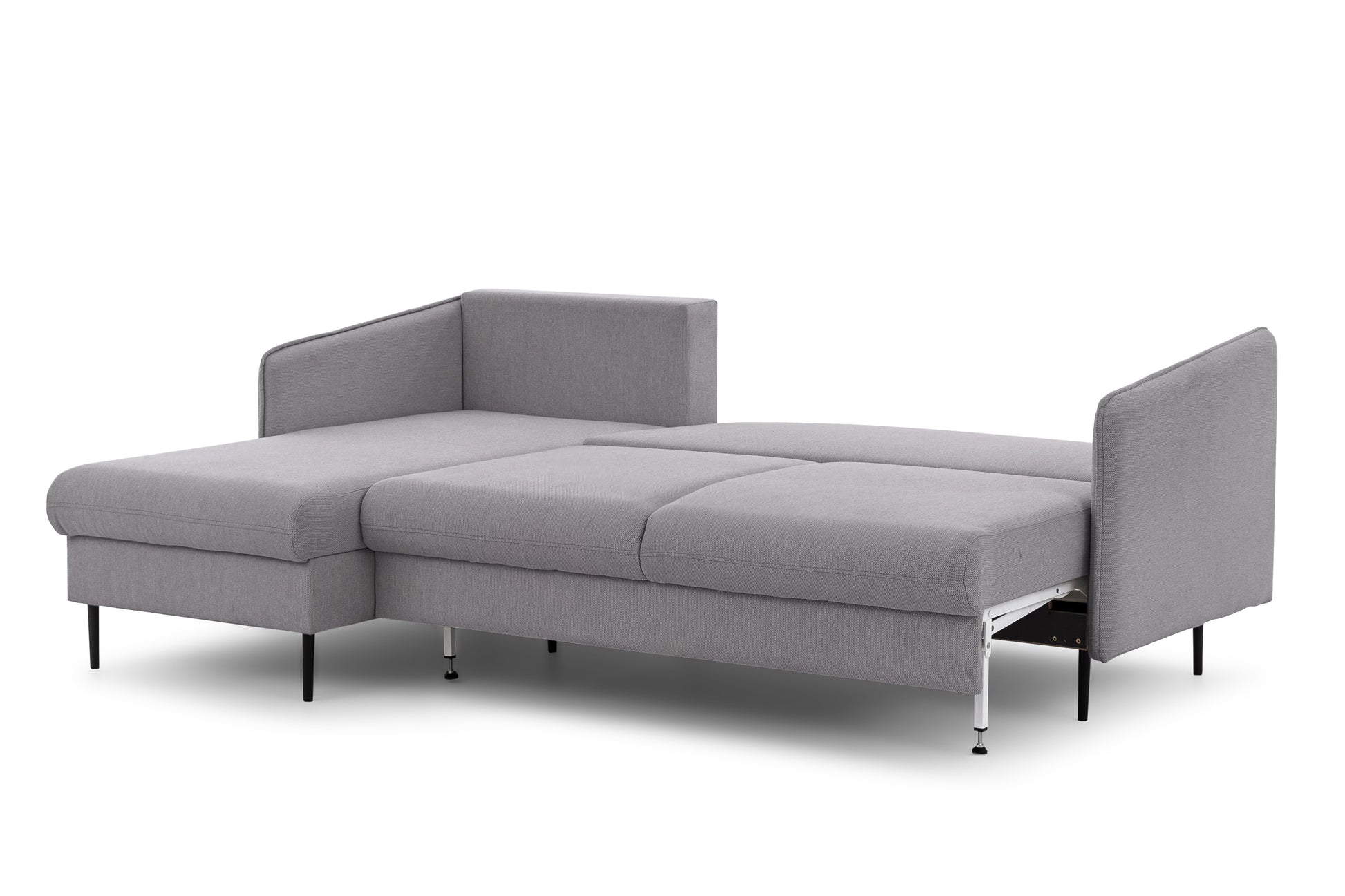 Taila Mini linkse hoekbank met slaapfunctie en opbergvak | Grijze vlecht Loft 19 | Zwarte poten