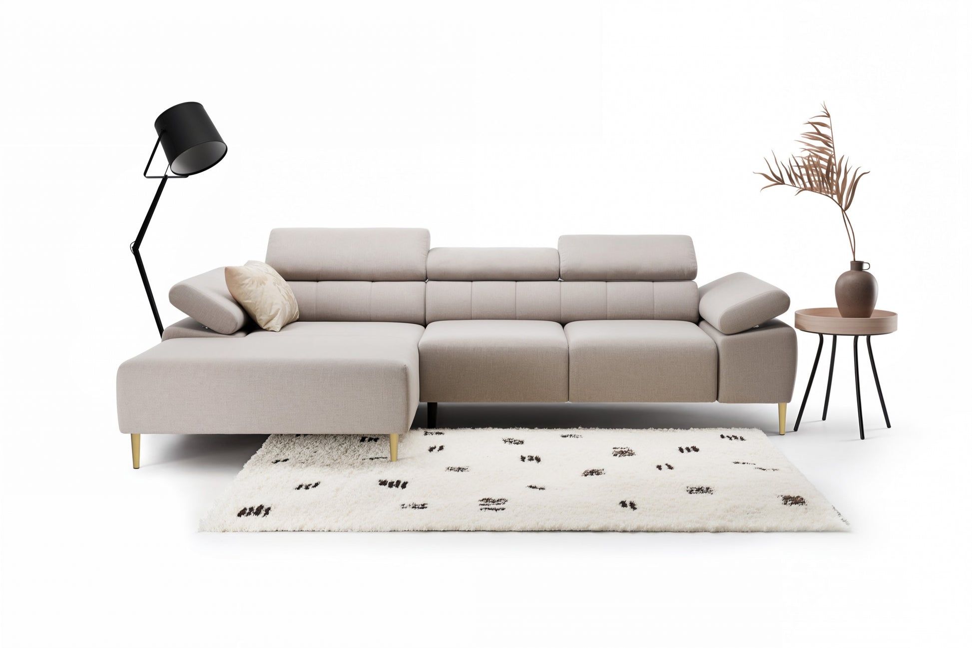 Taloria Mini hoekbank links – Elektrisch uitschuifbare zitting, slaapfunctie | Kleur: Beige Maya 01