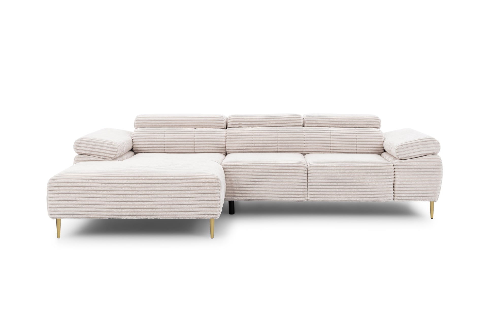Taloria Mini hoekbank links met elektrisch uitschuifbare zitting – beige pluche & gouden poten