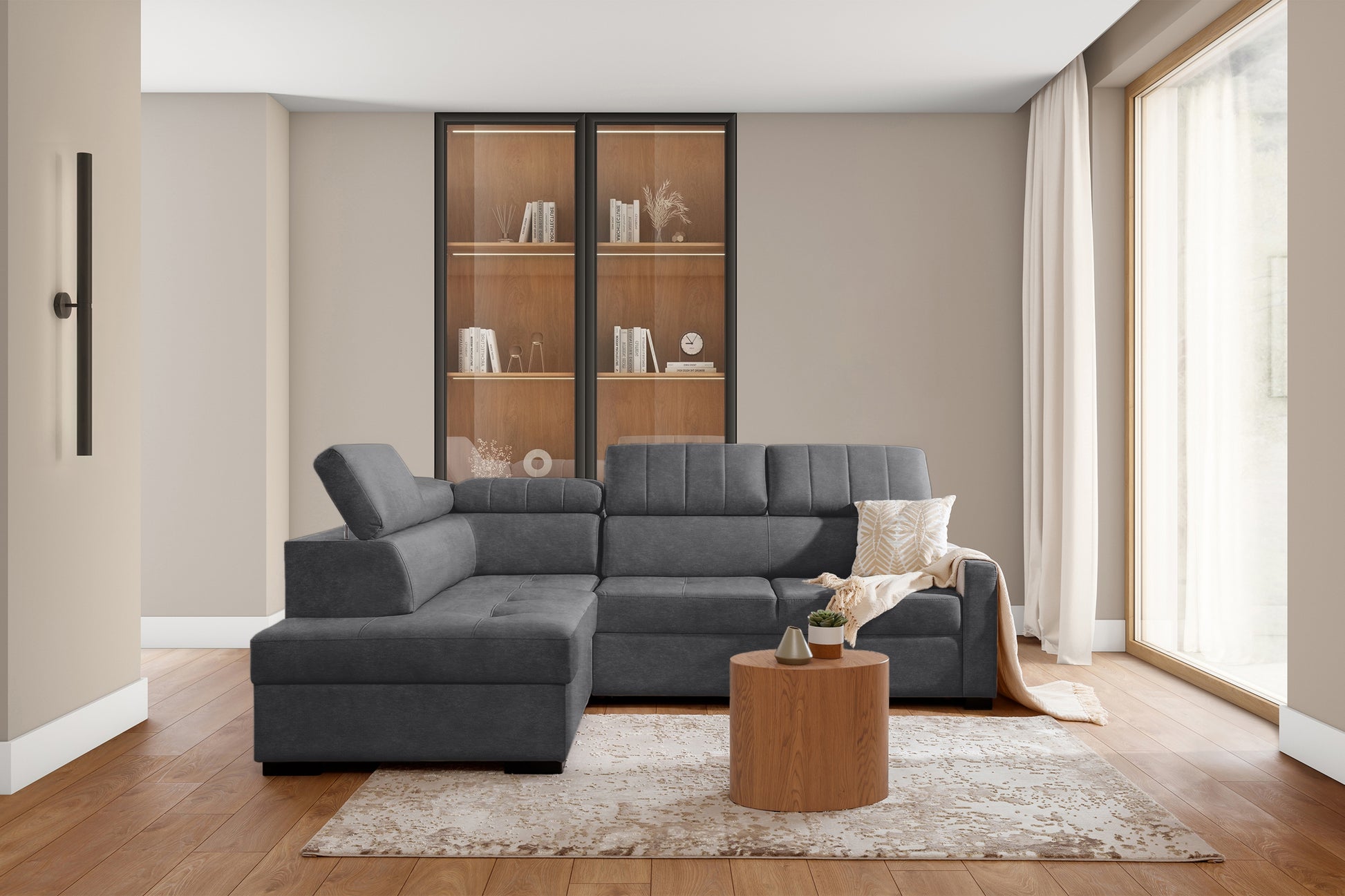 Taremo L Hoekbank met Slaapfunctie en Opbergruimte | Grijs Fluweel | 249x104x202 cm