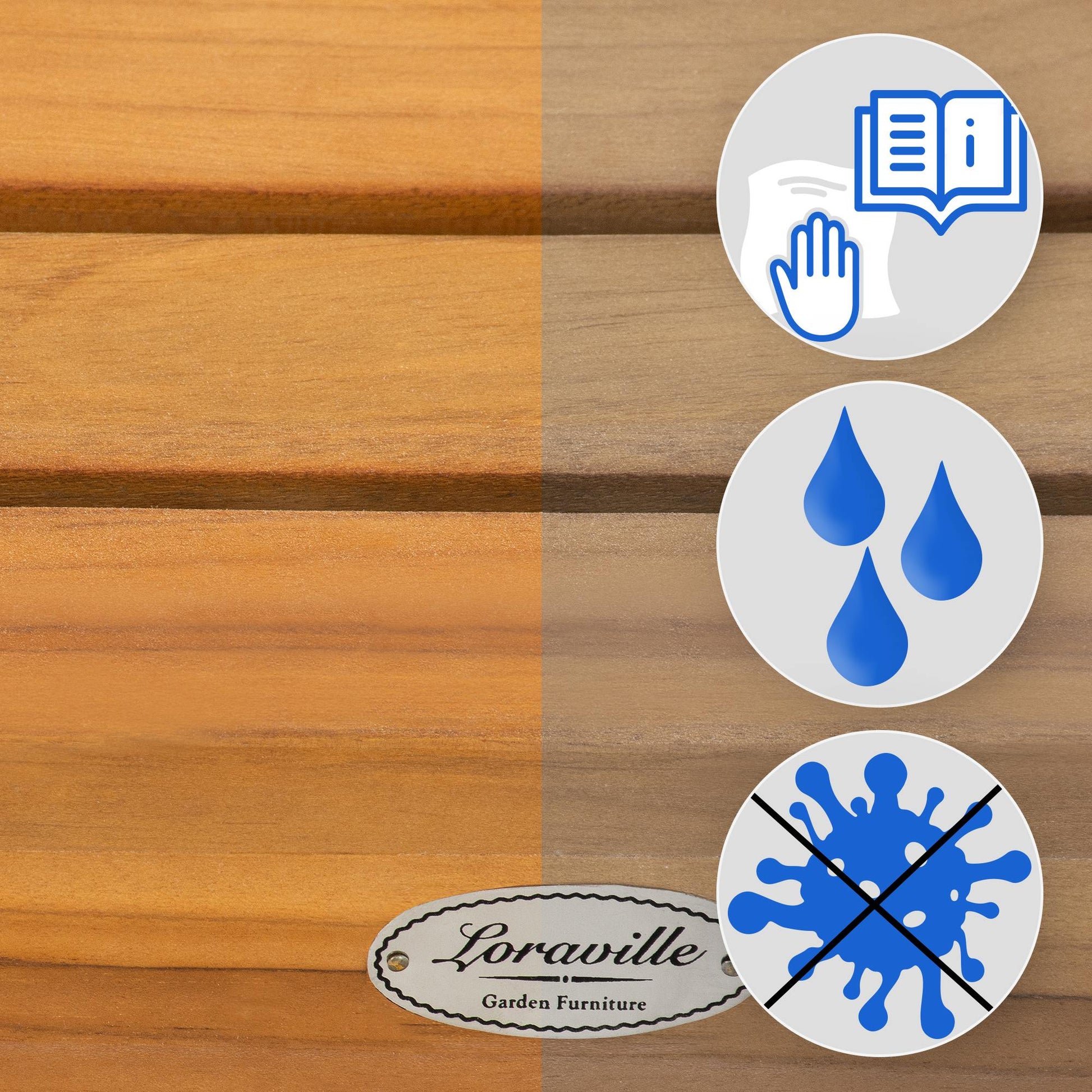 Gemaakt van stevig teakhout, is deze bank niet alleen aantrekkelijk maar ook weerbestendig, en kan het hele jaar door buiten blijven staan.