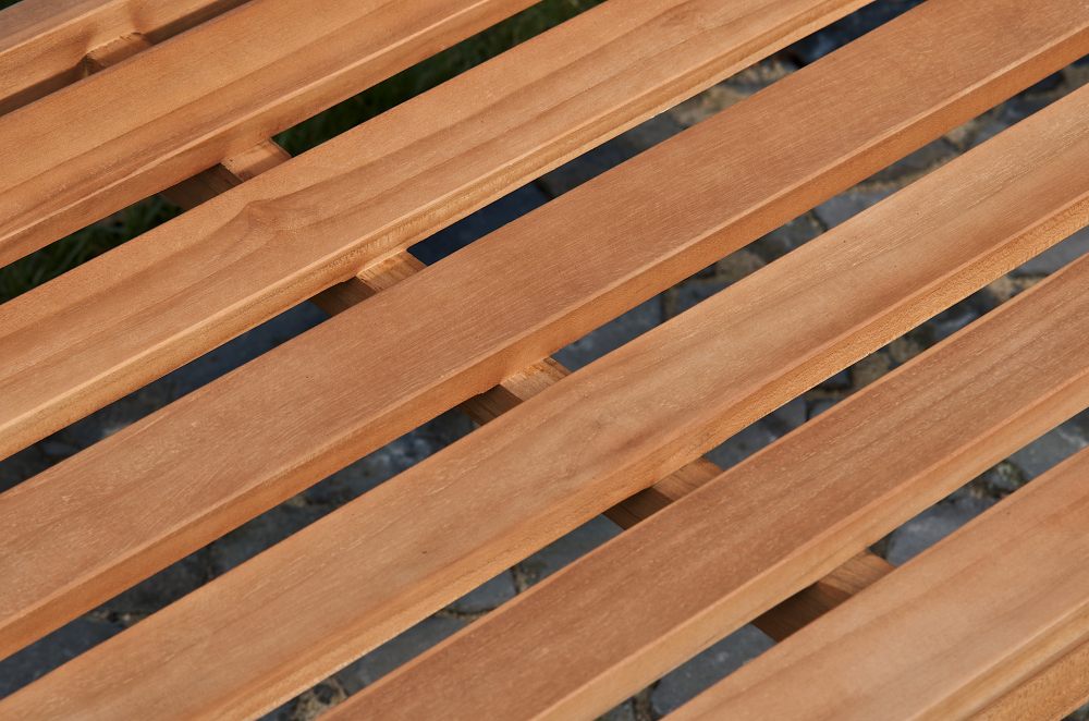 Teakhout is een zeer hoogwaardig en duurzaam materiaal. Uw teakhouten tuinmeubelen kunnen daarom het hele jaar buiten blijven staan. Voor de langdurige conservering van de kleur wordt het gebruik van geschikte teakhoutoliën aanbevolen, die verkrijgbaar zijn in de gespecialiseerde handel.