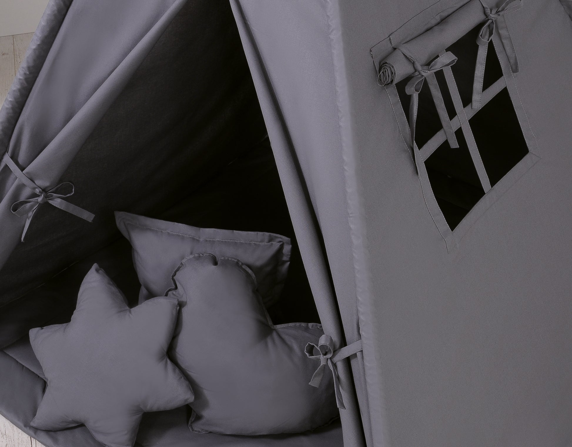 Teepee kindertent met speelmat en decoratieve veren – antraciet