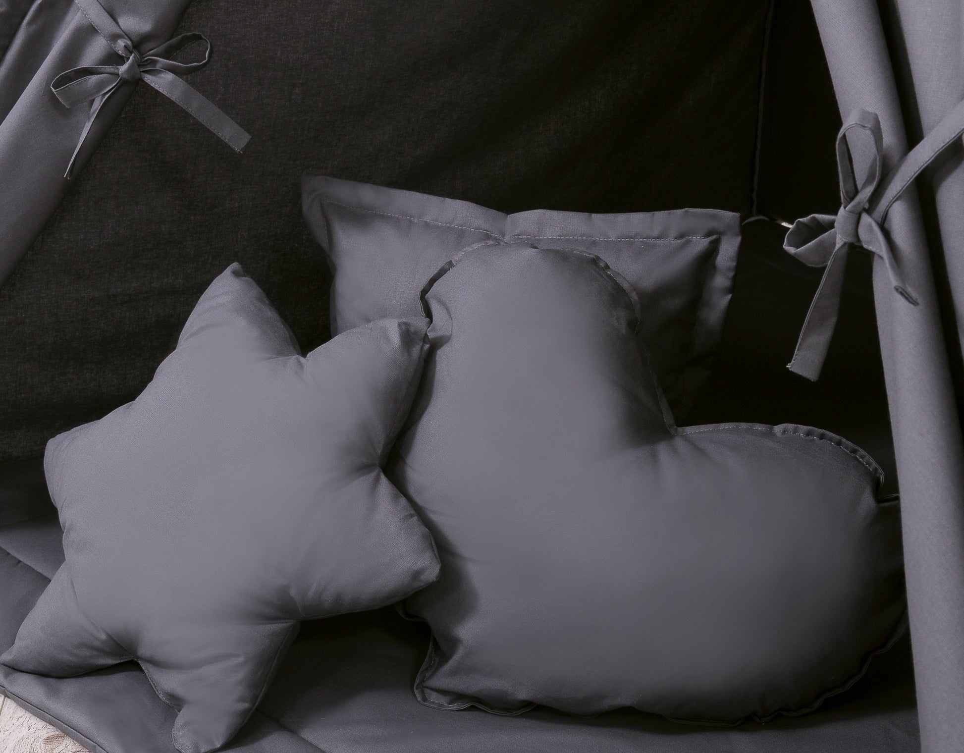 - 3 bijpassende kussens in hart-, ster- en vierkantvorm, gevuld met ECO FILLBALL vezel