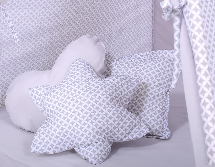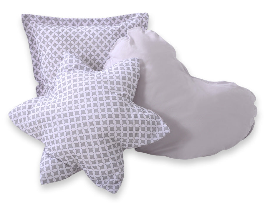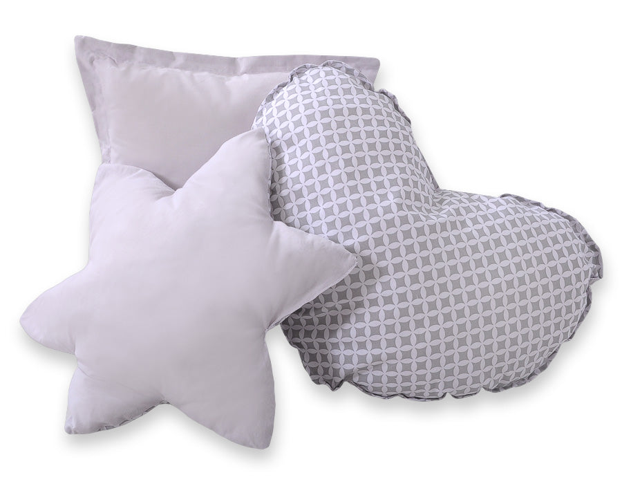 - Kussenset: 3 stuks (hart, ster en vierkant), gemaakt van 100% katoen en gevuld met ECO FILLBALL vezels