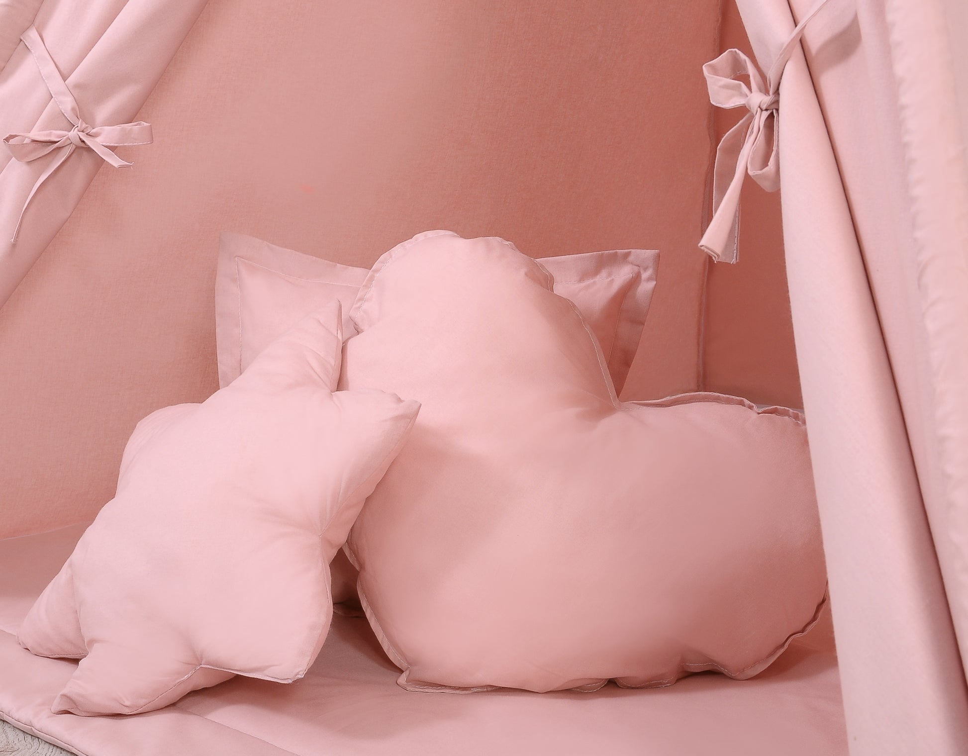 - 3 kussens in bijpassende kleuren: hart, ster en vierkant, gevuld met ECO FILLBALL