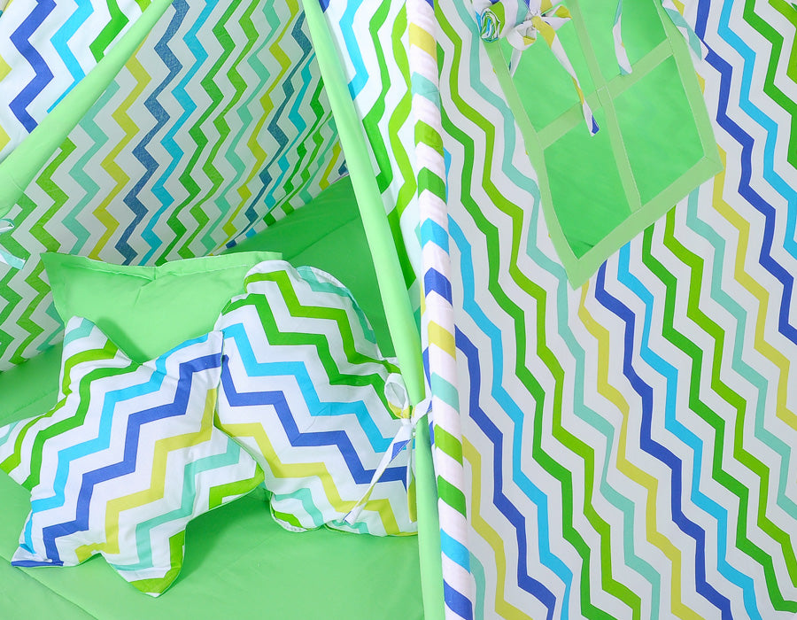 Tipi Tent voor Kinderen + Decoratieve Veren - Chevron Groen-Blauw