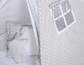 - Raampje met gordijn en ingang met bindlinten voor vrije doorloop of gezellig verstoppen