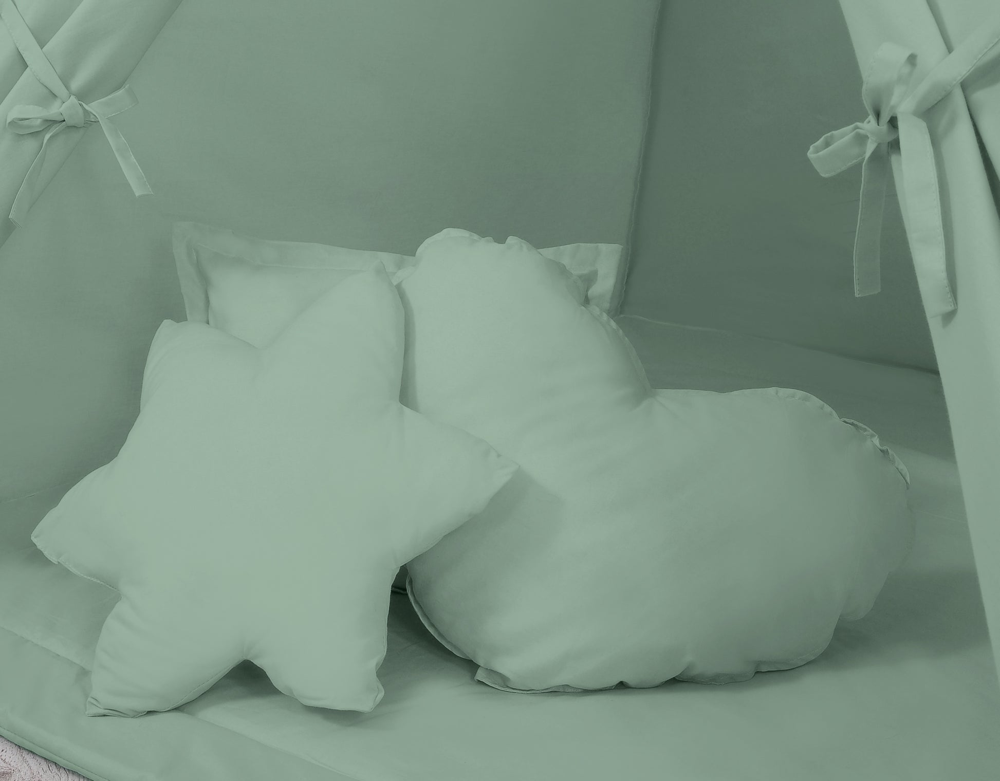 Pastelgroene Tipi Tent voor Kinderen + Speelmat + Kussens + Decoratieve Veren