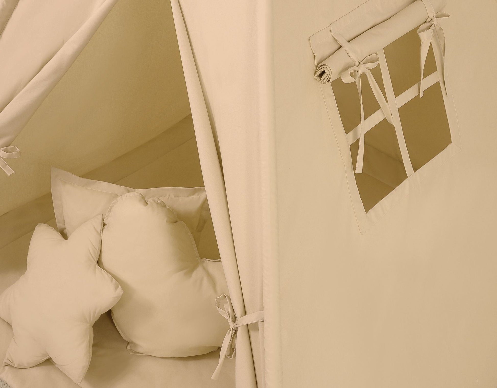 Met deze tippi tent creëert u een veilige en sfeervolle speelplek waar uw kind heerlijk kan wegdromen en spelen. Verkrijgbaar in diverse kleuren en optioneel uit te breiden met een frame stabilisator voor extra stevigheid.