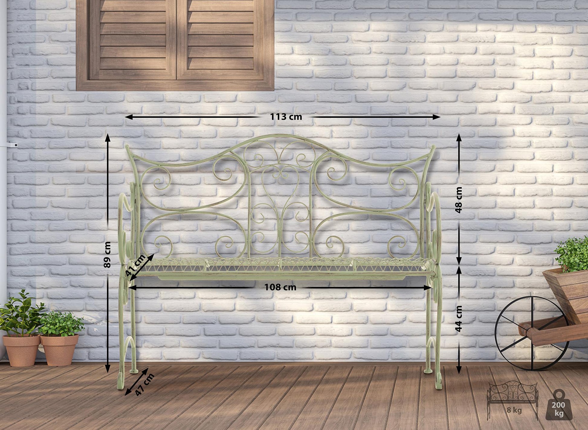 Tijdloze tuinbank in antiek groene kleur