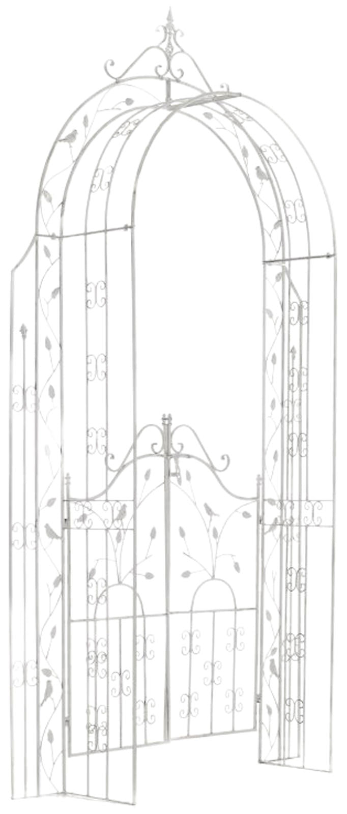 Onze exclusieve tuinboog met poort is liefdevol gedecoreerd met vele details, waardoor het perfect als klimhulp voor klimop en andere klimplanten kan dienen. Deze boog met zijn twee afsluitbare en prachtig gedecoreerde poortvleugels is ook een indrukwekkende blikvanger in elke tuin.