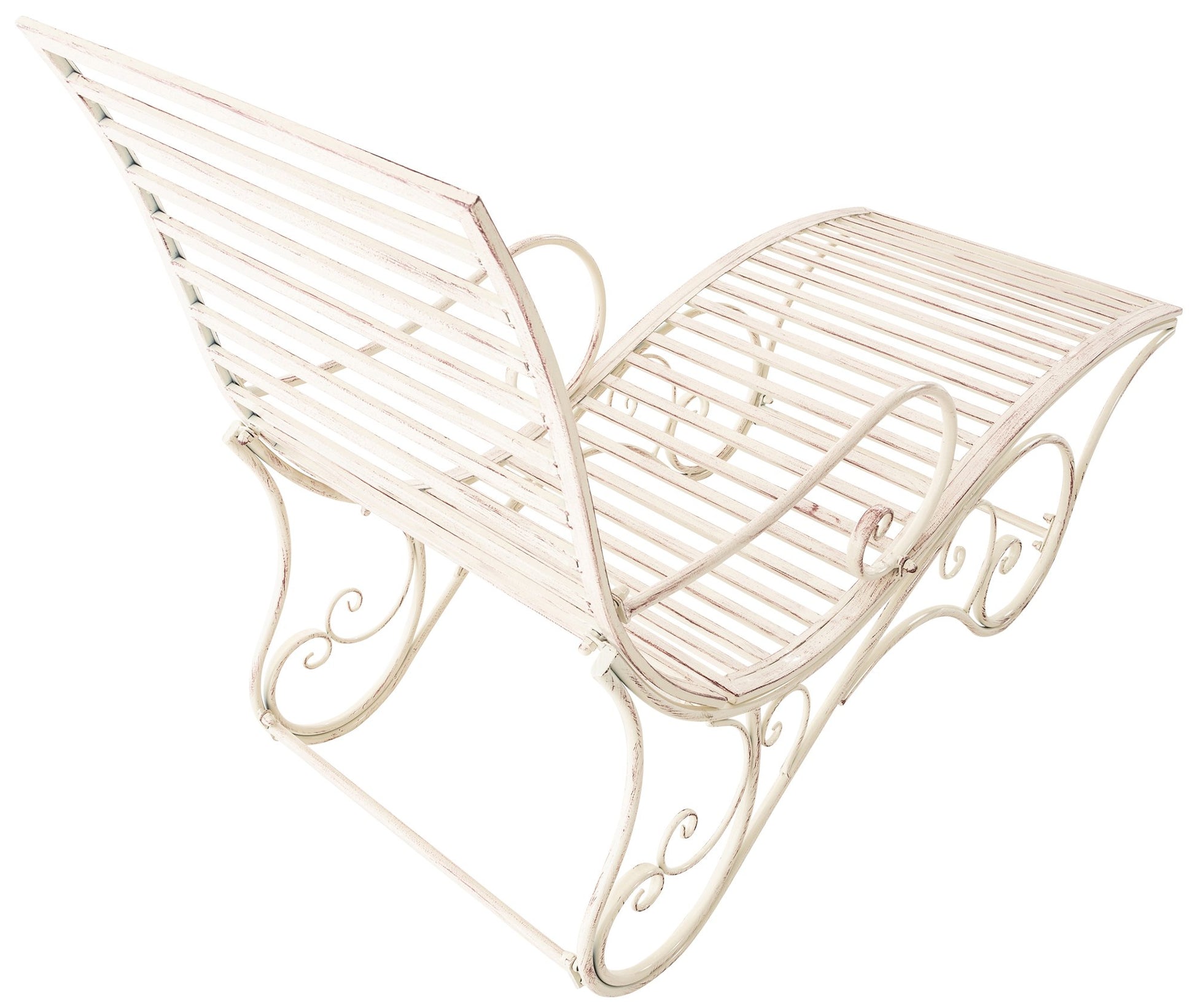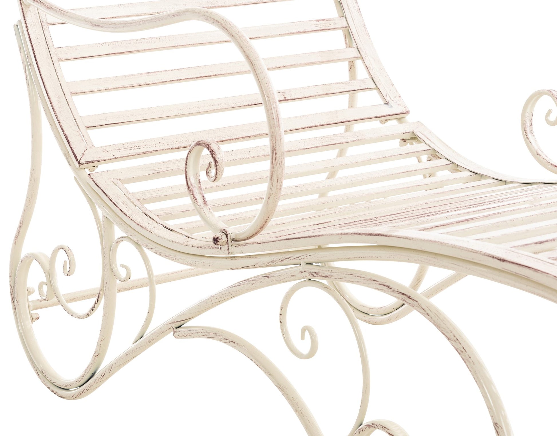 Deze tuinligstoel in antieke stijl is perfect om te ontspannen en fungeert ook als een stijlvol stukje decoratie. Met zijn klassiek ontwerp en liefdevol handgemaakte details is dit exclusieve ligbed van ijzer een blikvanger in elke tuin, op het terras, in de serre of binnen. Dankzij het stevige metalen frame biedt het een uitstekende stabiliteit en duurzame kwaliteit.