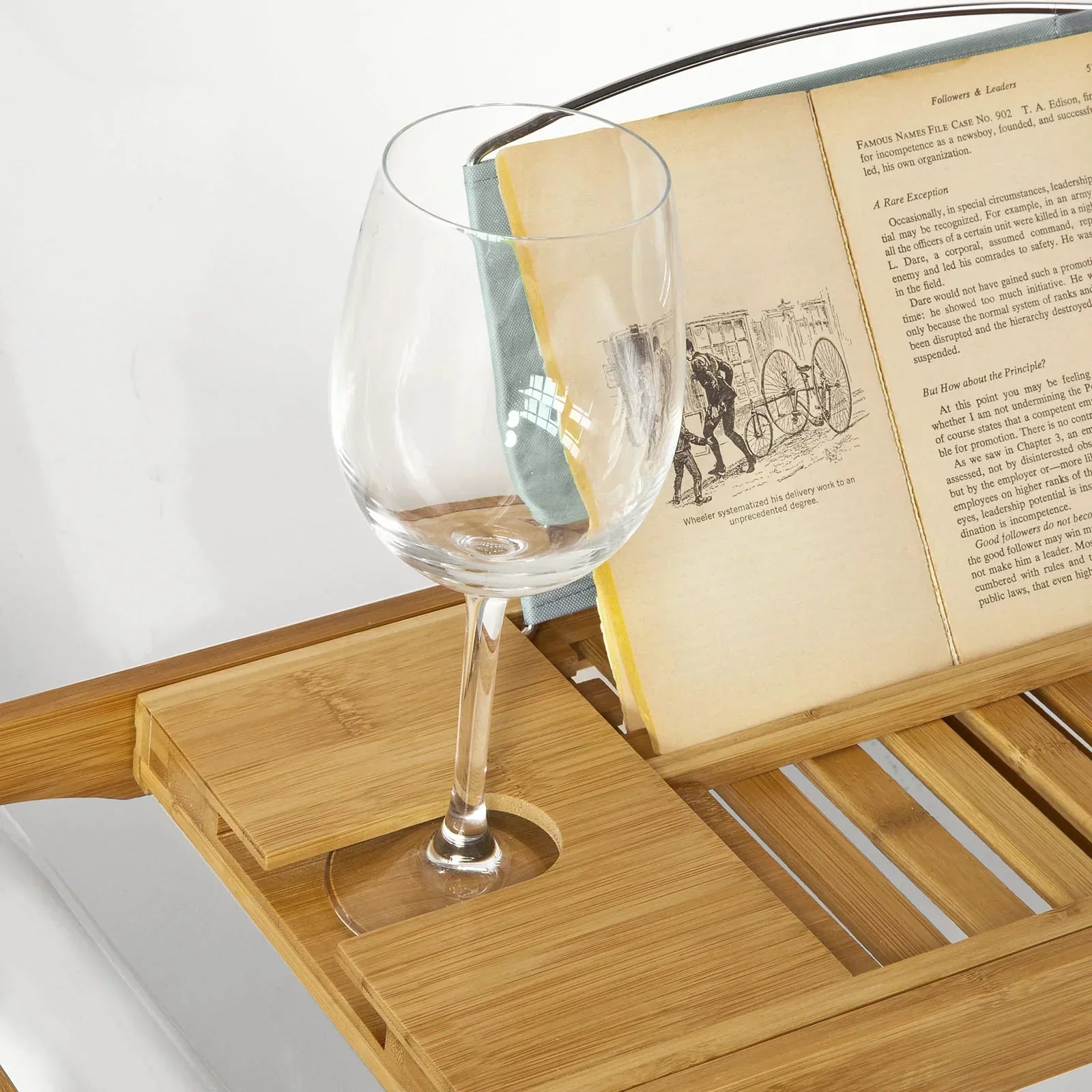 Uitschuifbaar Bamboe Badkuiprek - Caddybakje met Boekensteun iPad Telefoon Wijnhouder