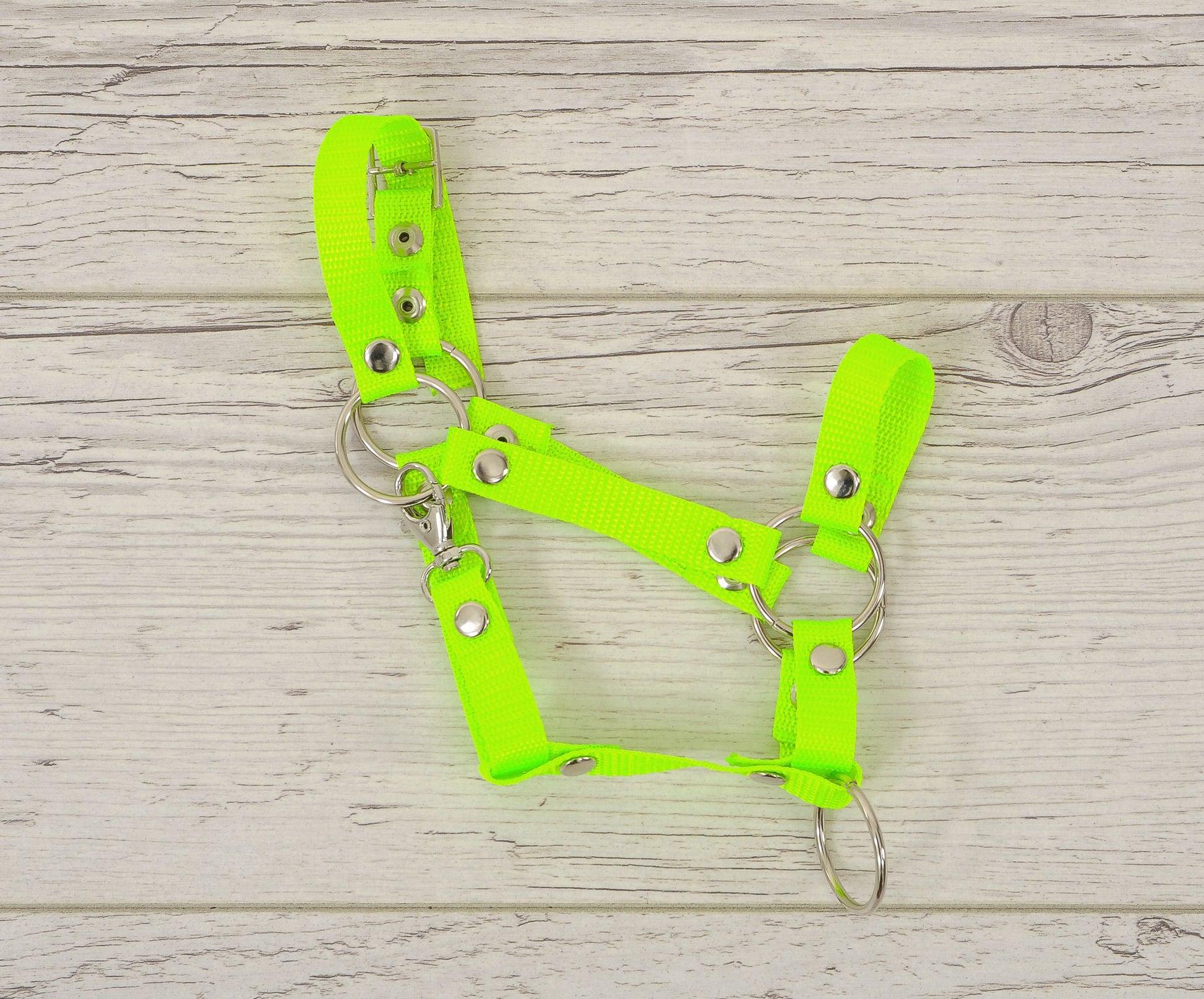 Een praktisch en duurzaam halster voor het hobby paard, vervaardigd uit hoogwaardig neon nylonband van 2,5 cm breed. Dankzij de verstelbare gesp is het halster perfect aan te passen voor een comfortabele pasvorm.