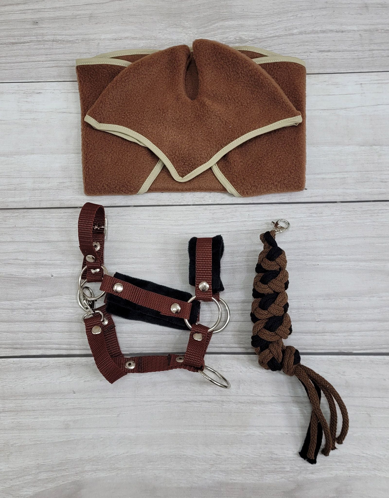 Verstelbaar Halster voor Hobby Paard A3 – Bruin met Zwarte Bontvoering