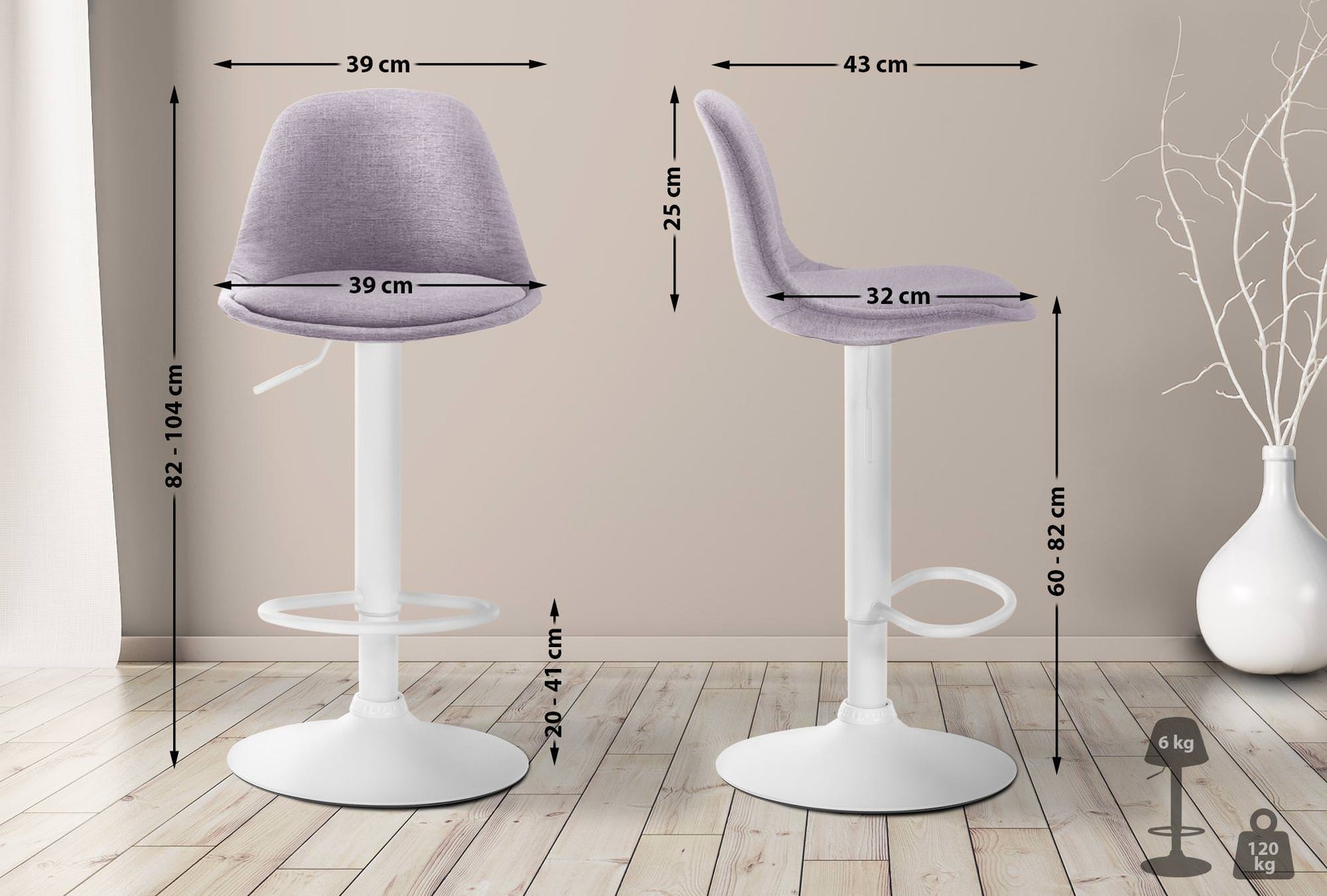 Totale hoogte: 82 - 104 cm