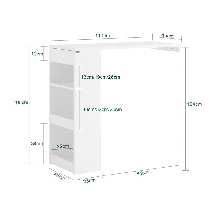 Verstelbare Bartafel - Eettafel - Wandgemonteerde tafel - MDF-constructie - Ruimtebesparend ontwerp - Verstelbare hoogte - Eenvoudige montage - Wit - 110 cm x 106 cm x 45 cm