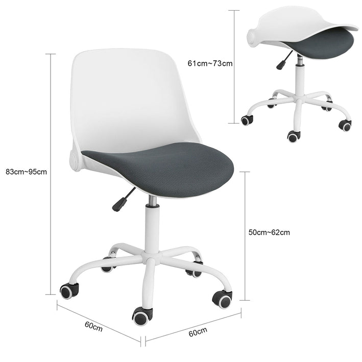 Verstelbare Bureaustoel - Jeugddraaistoel - Bureaustoel Wit - Opvouwbare rugleuning - Gladde 360° wielen - In hoogte verstelbaar - 83-95cm x 50-62cm Zithoogte