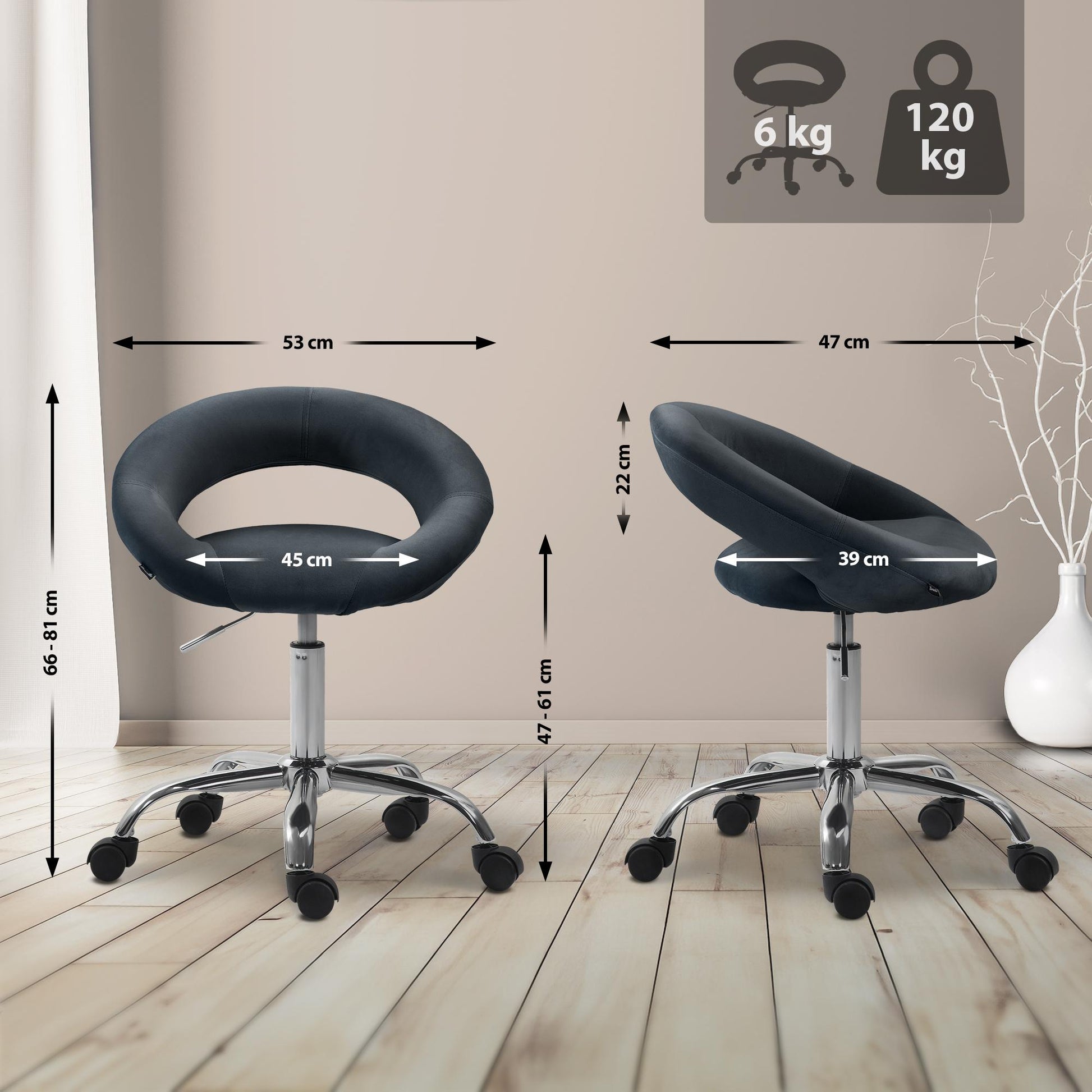 Verstelbare Draaikruk - Werkkruk - Comfortabel Fluweel, Rugleuning