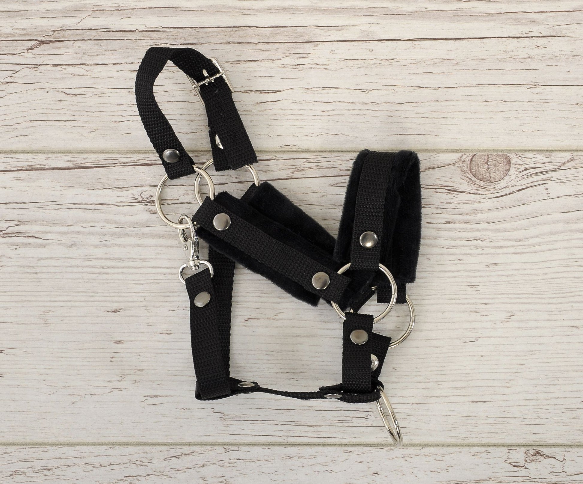 Een praktische en duurzame halster met zachte bontvoering, speciaal ontworpen voor het hobby paard. Gemaakt van hoogwaardig 1,5 cm breed webbing en zacht minky-materiaal voor optimaal comfort.