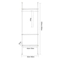 Details: Of u deze verstelbare kledingkastorganizer nu in uw slaapkamer, kleedkamer of zelfs uw woonkamer plaatst, het slimme ontwerp zal de ideale manier blijken om uw opslagruimte te vergroten. Het handige systeem is ontworpen om te functioneren als een kledingkast zonder bijna evenveel ruimte in beslag te nemen. Het kan eenvoudig groter of breder worden gemaakt, zodat het perfect bij uw ruimte past - of bij uw steeds groter wordende kledingkast! De kast heeft 3 planken en een ophangrail, waardoor je voldoende opbergruimte hebt. Kenmerken Verstelbaar systeem. Variabele maat. Stabiel en eenvoudig ontwerp. Weinig ruimte in beslag. Veel opbergruimte. Snelle en eenvoudige installatie. Productdetails Materiaal: metalen staven met plastic connectoren. Afmetingen: B(52-80) x H(233-300)cm. Gewicht: 4 kg. Laadvermogen: 16 kg. De decoratieve elementen zijn niet bij de levering inbegrepen. Het artikel wordt geleverd in een platte verpakking en vereist zelfmontage. Gedetailleerde instructies meegeleverd. Als u vragen heeft, neem dan per e-mail contact met ons op, wij zullen zo snel mogelijk antwoorden!