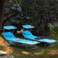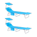Verstelbare ligstoel met luifel - Tuinligstoel - Strandstoel - Duurzaam metalen frame - Synthetische vezelstof - Opvouwbaar en draagbaar - 195 cm x 90 cm x 63 cm