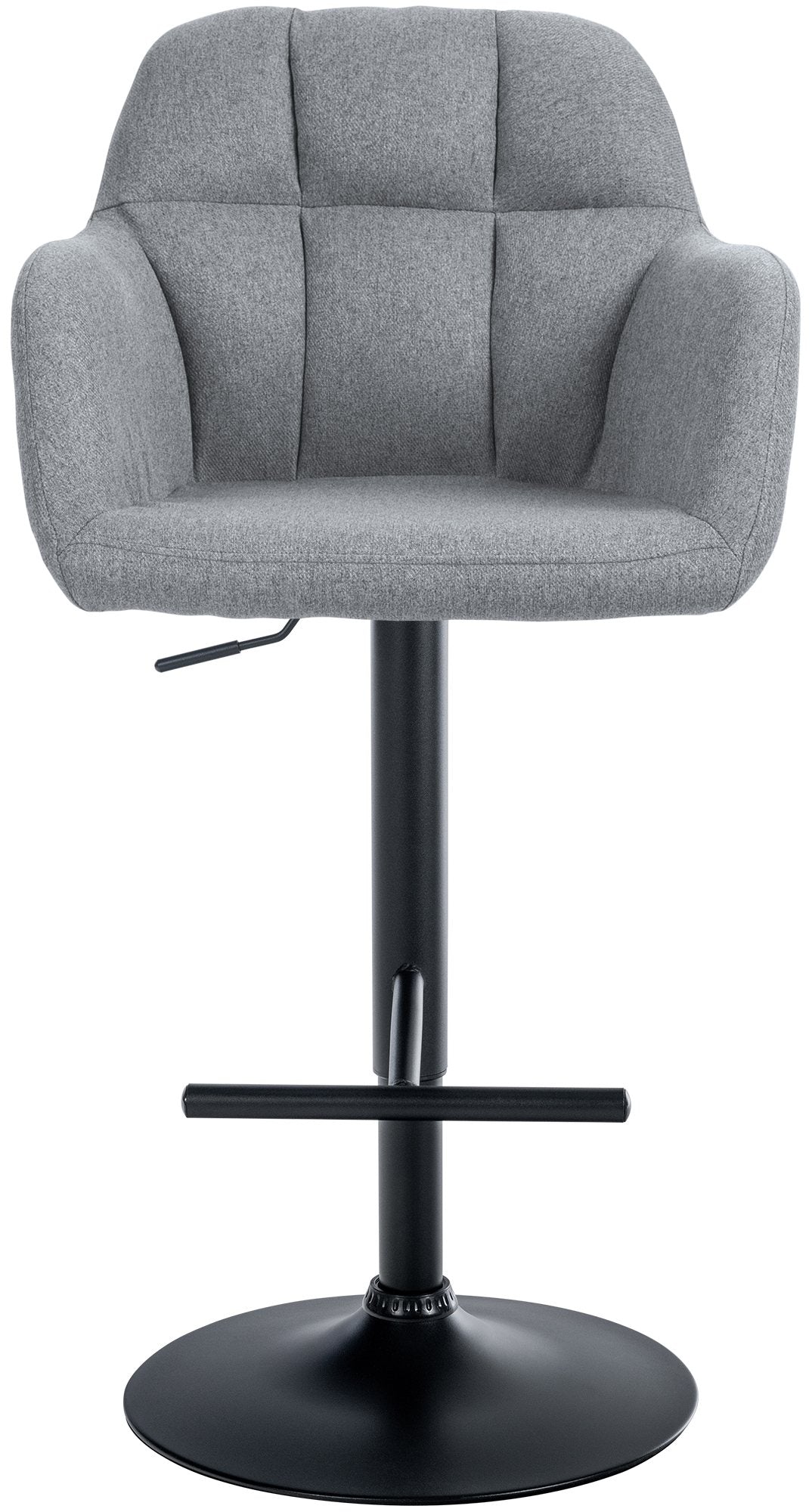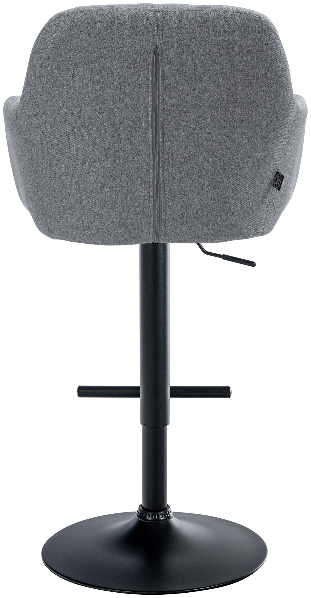 De stoffen barkruk onderscheidt zich door zijn functioneel design en zitcomfort. Hij kan moeiteloos worden aangepast dankzij de verstelbare hoogte van 97 tot 118 cm, een totale breedte van 57 cm en een diepte van 59 cm, zodat hij bij diverse barhoogtes past. De zitting en rugleuning met een afmeting van 43 x 41 cm bieden voldoende ondersteuning en comfort. Met armleuningen en een voetsteun aan de trompetvormige voet is de functionaliteit compleet, terwijl een vloerbeschermer eventuele schade aan het oppervlak voorkomt. Met een gewicht van 9 kg en een draagvermogen van maximaal 120 kg is de barkruk een stevige en betrouwbare keuze. De 360° draaifunctie zorgt bovendien voor extra mobiliteit en flexibiliteit.