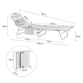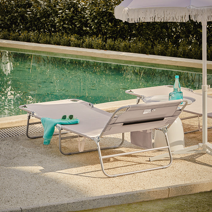 Verstelbare strandligstoel - Tuinligstoel - Opvouwbare ligstoel - Ademende synthetische vezels - Afneembaar kussen - Zijvak - 195 cm x 58 cm x 63 cm - Beige
