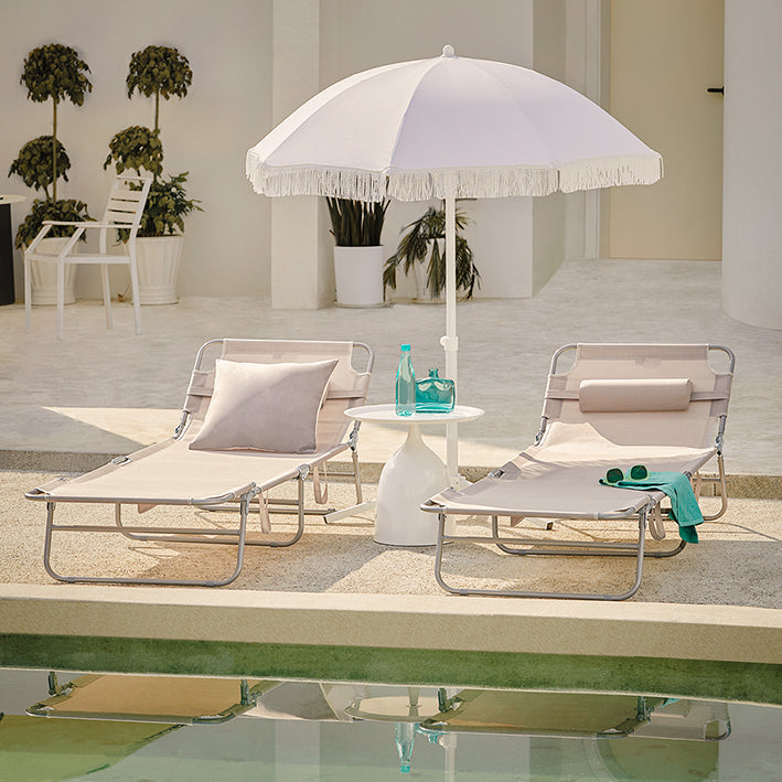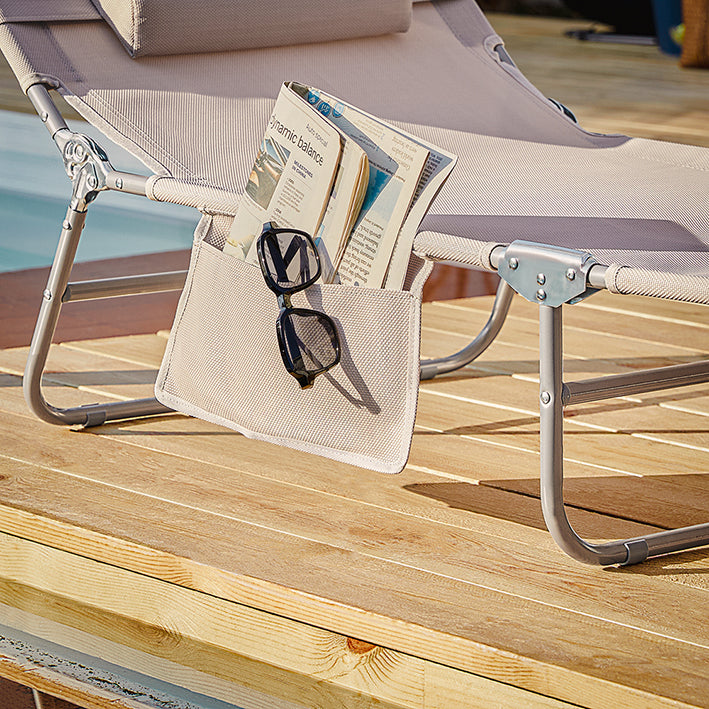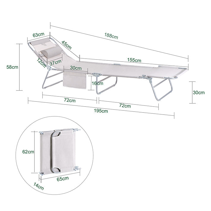Verstelbare strandligstoel - Tuinligstoel - Opvouwbare ligstoel - Ademende synthetische vezels - Snel opvouwbaar ontwerp - 195 cm x 58 cm x 63 cm - Beige