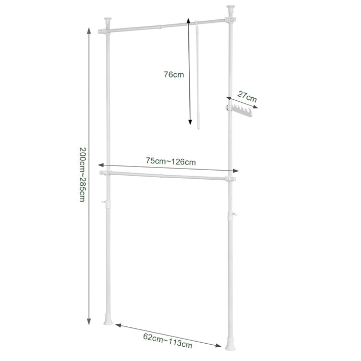 Verstelbare Telescopische Kledingroede - Garderobeorganisator - Rekkensysteem - Ruimtebesparend - Eenvoudige montage - Variabele maat 62-113 cm x 200-285 cm
