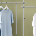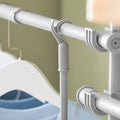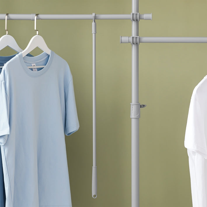 Eenvoudige montage en demontageGeen gereedschap? Geen probleem! De kledingroede heeft een eenvoudig montageproces zonder gereedschap. Gemakkelijk te installeren door de telescoopstangen tussen de vloer en het plafond te klemmen.