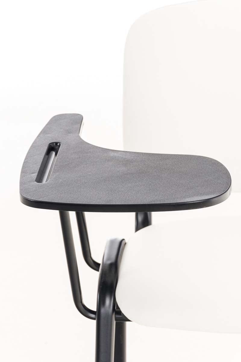 Deze stoel is perfect voor gebruik in wachtkamers, beurzen en andere evenementen. De handige opklaptafel zorgt ervoor dat u comfortabel kunt zitten met een functioneel werkvlak, zonder dat een aparte tafel nodig is. Naast zijn stijlvolle, tijdloze design, biedt deze stoel optimaal zitcomfort door de gevoerde zitting, wat hem ideaal maakt voor langere zitperiodes.