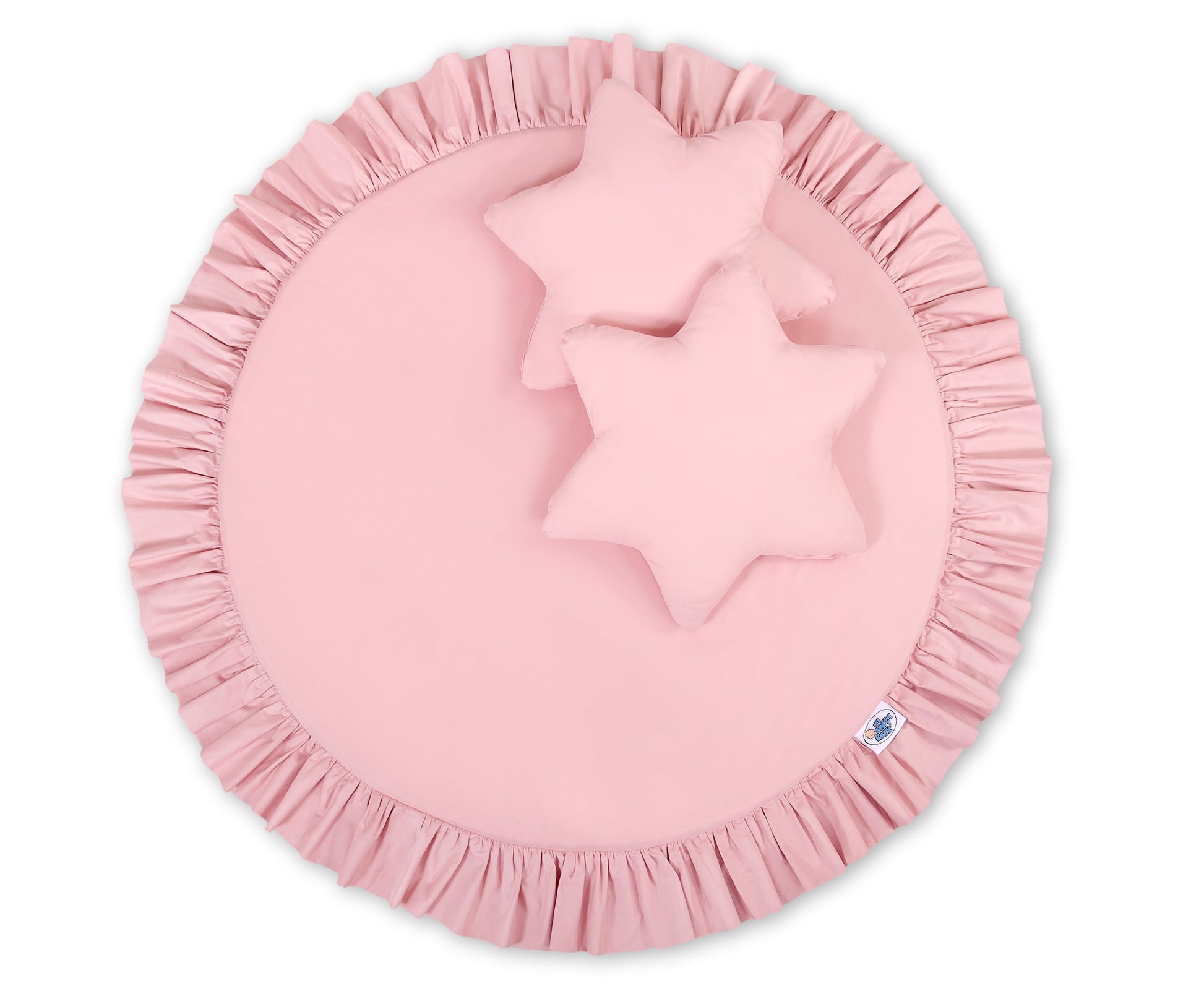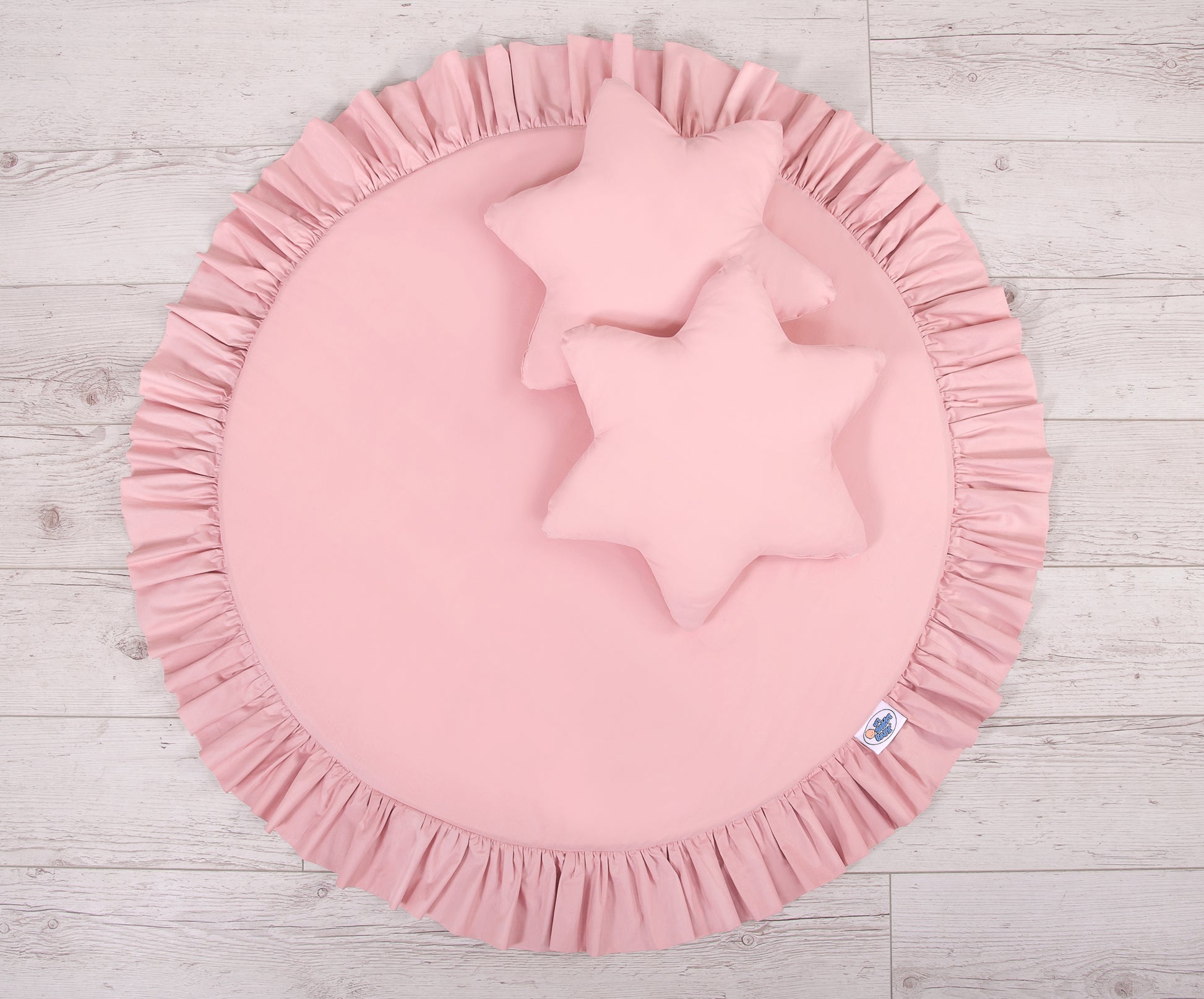 Een stijlvolle vloerspeelmat met ruches, perfect te gebruiken als tapijt, speelmat of onderkleed voor een lange hemel. Geschikt vanaf de eerste levensdagen als rustplek of voor 'tummy time'.