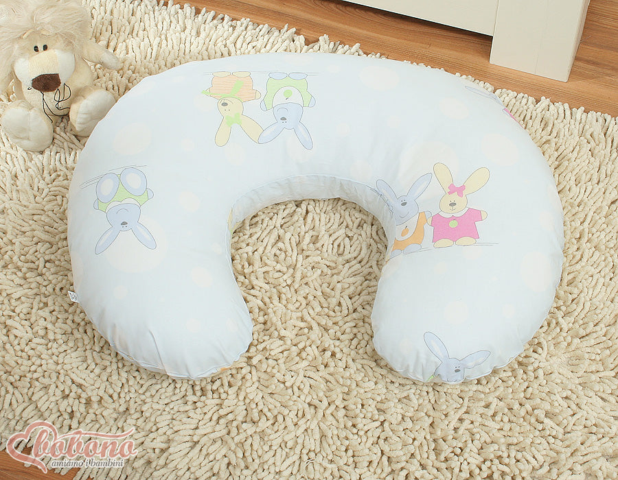 Voedingskussen Nursing Croissant - Blauw met Konijntjes