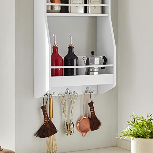 - Het heeft 3 planken voor specerijen, kruiden, potten, enz. en 3 haken aan de onderkant voor het ophangen van handdoeken, borstels en andere accessoires.