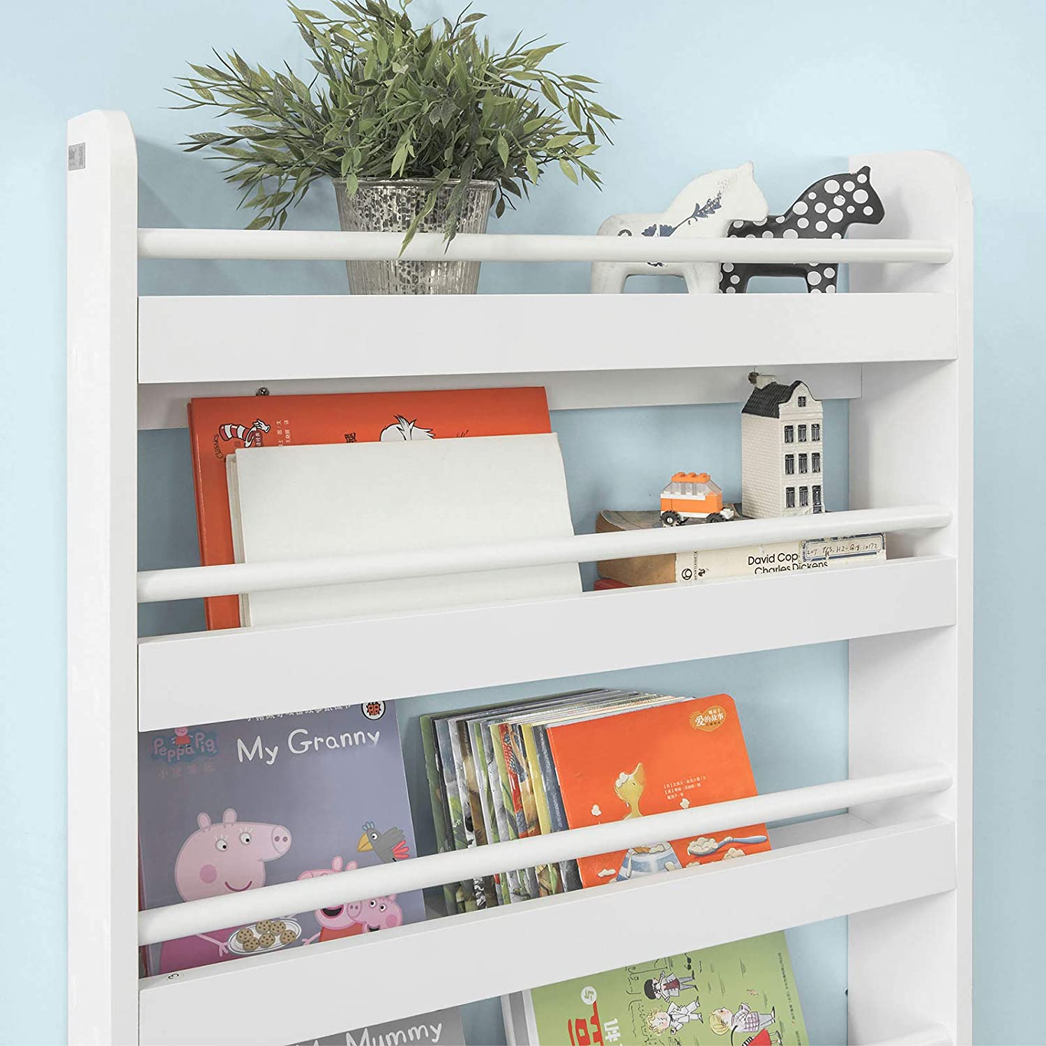 - Wandgemonteerde kinderboekenkast voor kinderen – 4 opbergplanken - ideaal voor het opbergen van boeken, tijdschriften, speelgoed, enz.