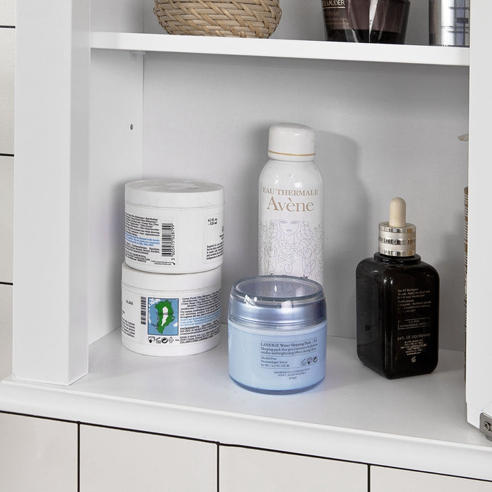 Geoptimaliseerd ruimtegebruikMet twee ruime planken is deze kast perfect voor het opbergen van cosmetica, medicijnen of kleine decoratieartikelen, zodat je ruimte georganiseerd en netjes blijft.