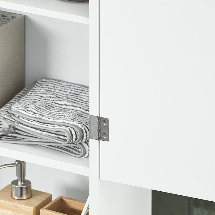 Elegantie in meerdere kamersNiet alleen voor badkamers, deze kast brengt elegantie en bruikbaarheid in elke kamer. Gebruik hem als medicijnkastje, keukenopberger of organisatorisch meubelstuk in je gang.