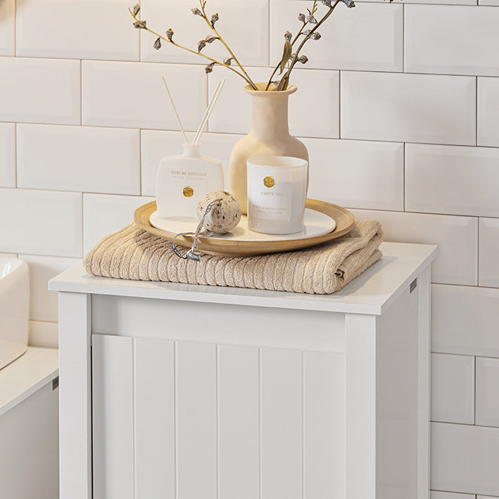 Efficiënt wasbeheerUitgerust met een ingebouwde uitklapbare waszak, kunt u in deze kast uw vuile was discreet opbergen. De tas is ruim en kan eenvoudig worden verwijderd om te wassen, waardoor uw wasroutine wordt vereenvoudigd.