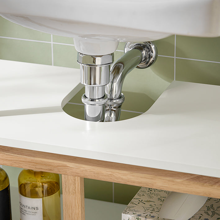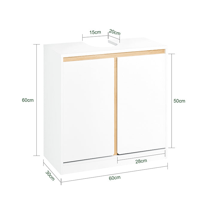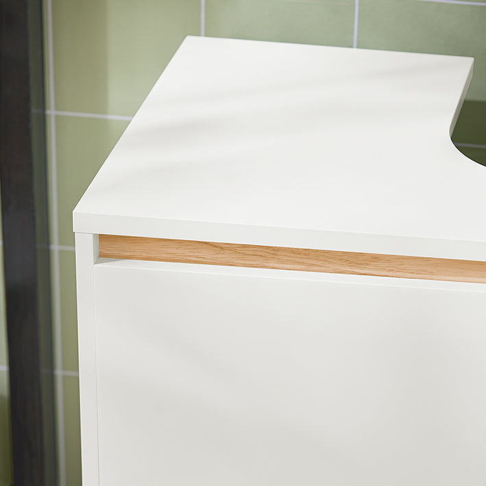 Deze kast is ontworpen om de ruimte in uw badkamer te maximaliseren. Dankzij de slimme uitsparing voor de sifon past hij perfect onder de meeste spoelbakken, waardoor hij een ideale keuze is voor kleine badkamers.