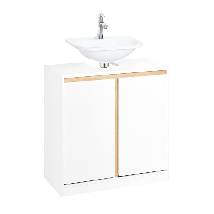 wastafelonderkast - badkamerkast - wastafelonderkast - MDF en rubberhout - stijlvol wit - ruimtebesparend ontwerp - 60 cm x 60 cm x 30 cm