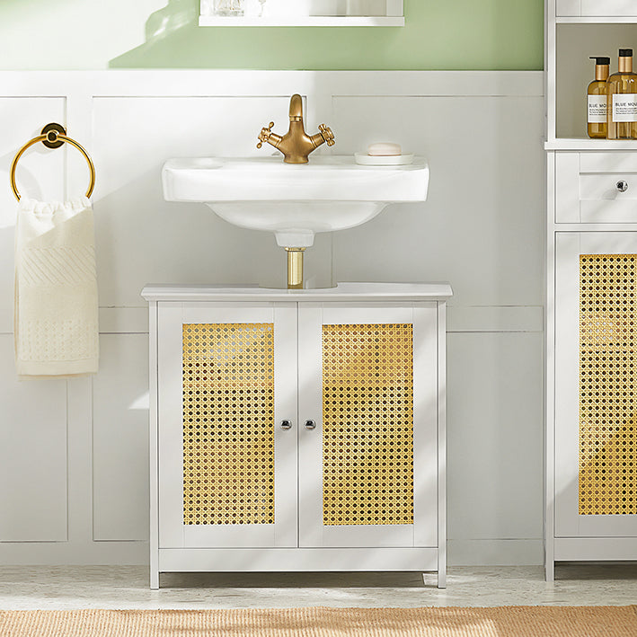 wastafelonderkast - badkameropslag - wastafelmeubel - verstelbare plank - luchtcirculerende roosterdeuren - MDF-constructie - 60 cm x 58 cm x 35 cm