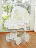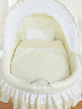 Wicker Babybed met Verstelbare Kap - Bellamy in Wit + Crèmekleeding