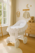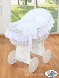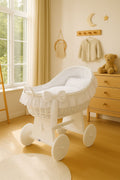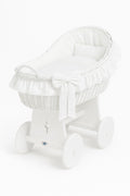 Wicker kinderwagenmand met kap en wit beddengoed – BellaFurn Baby