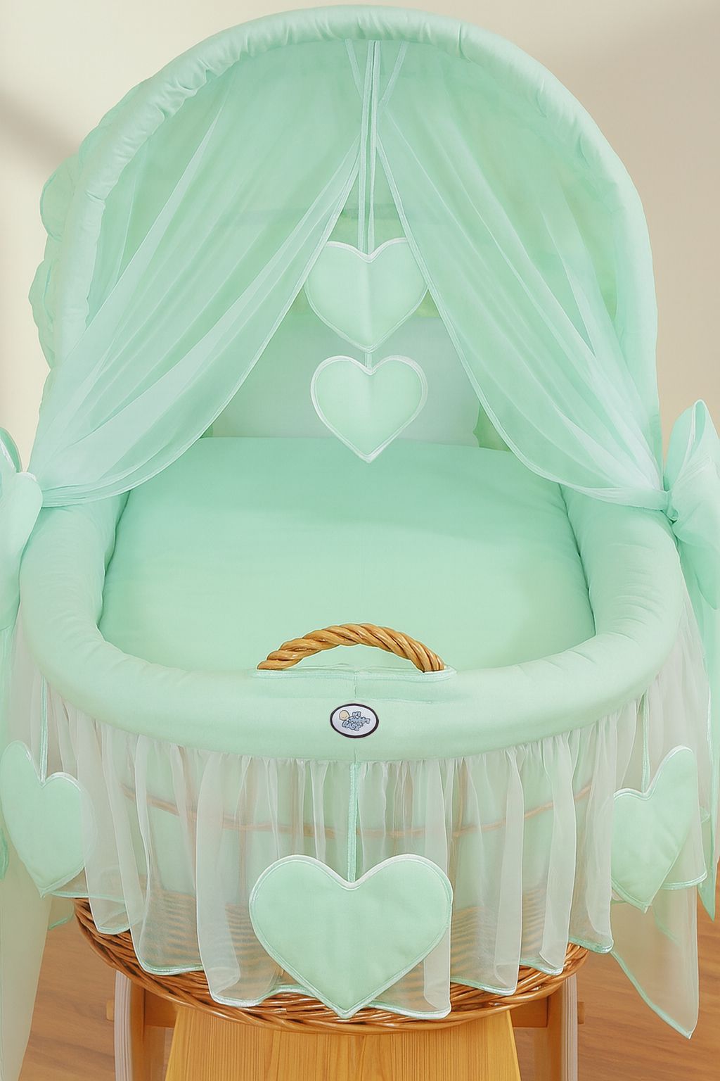Wicker Mand Wieg Amelie met Natuurlijke + Mint Bekleding – BellaFurn Baby